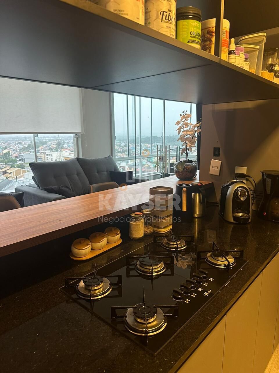 - Cozinha planejada com bancada americana, ideal para momentos de confraternização e praticidade no dia a dia.