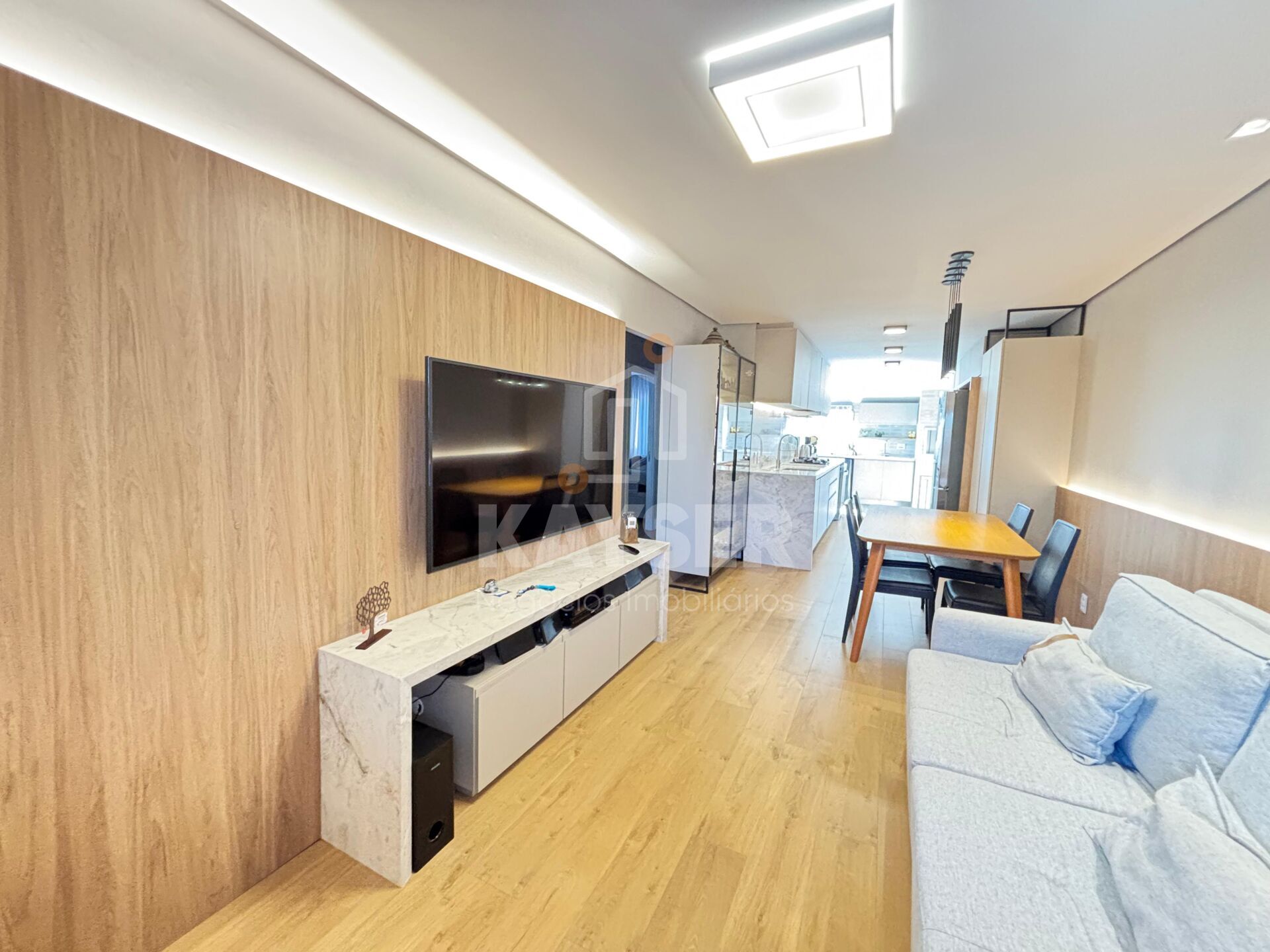 Sala de estar e jantar integradas com a cozinha proporcionando muita integração entre a família e visitantes com móveis exclusivos de alto padrão. Poussui ainda pátio privativo, área de serviço e churrasqueira junto a cozinha.