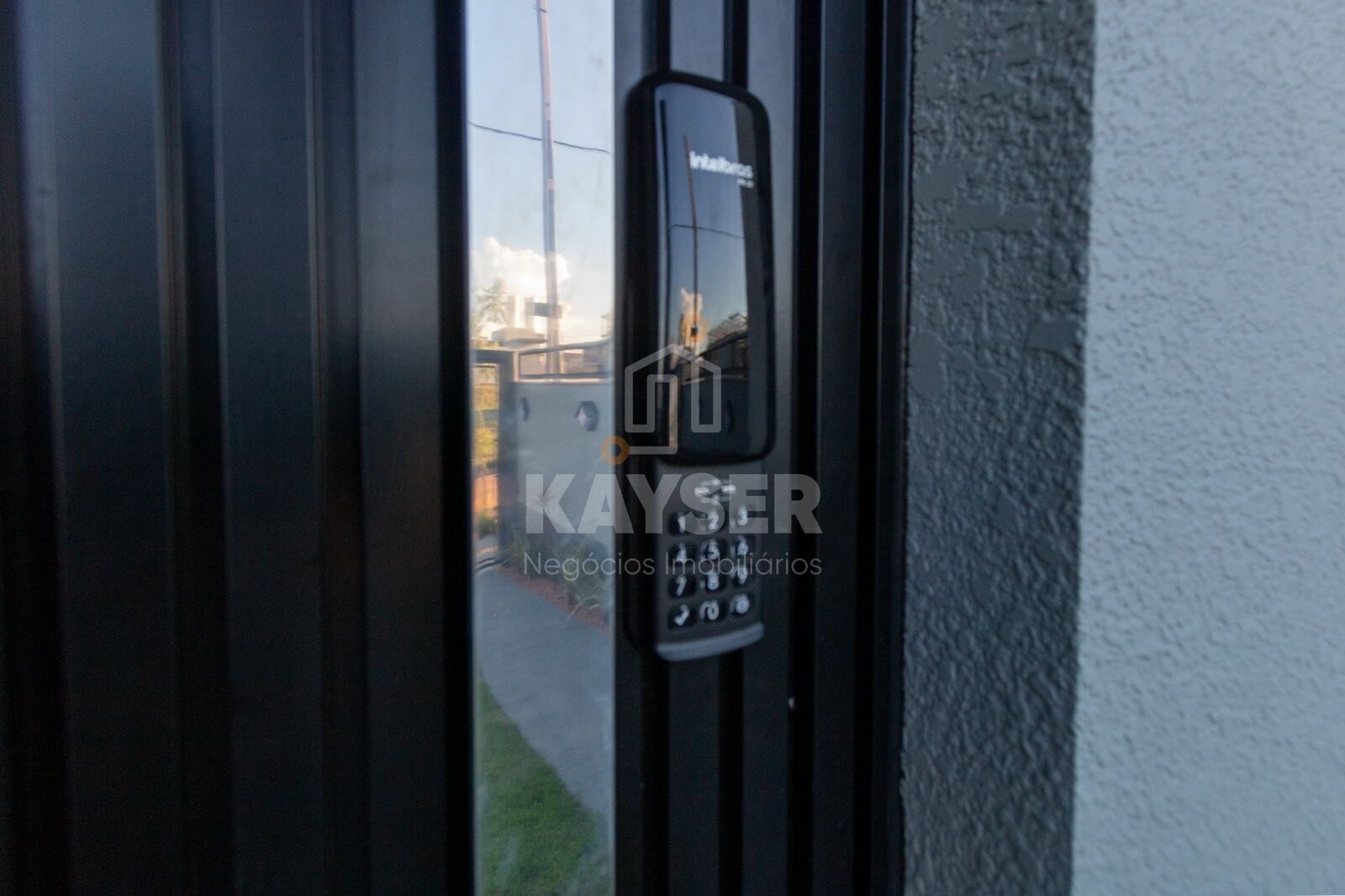 🚪 Porta principal pivotante ripada com fechadura eletrônica