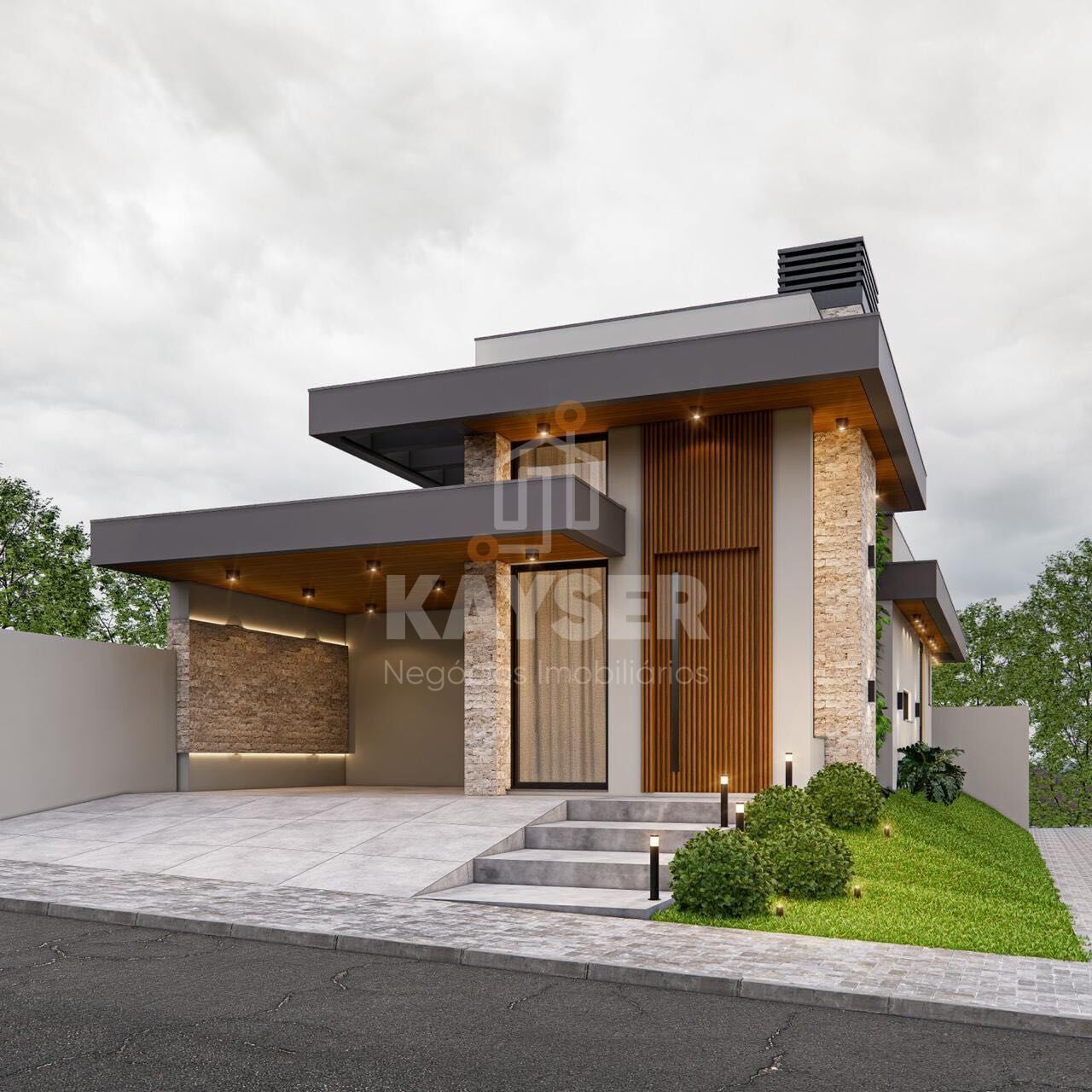 Casa de planta baixa, com 126,84 m² privativos, com 3 suítes sendo 1 suíte master com closet, 1 lavabo, 2 vagas de garagem, sala com pé direito duplo, cozinha e estar integrados, churrasqueira, piscina em pátio privativo, rebaixe em gesso.