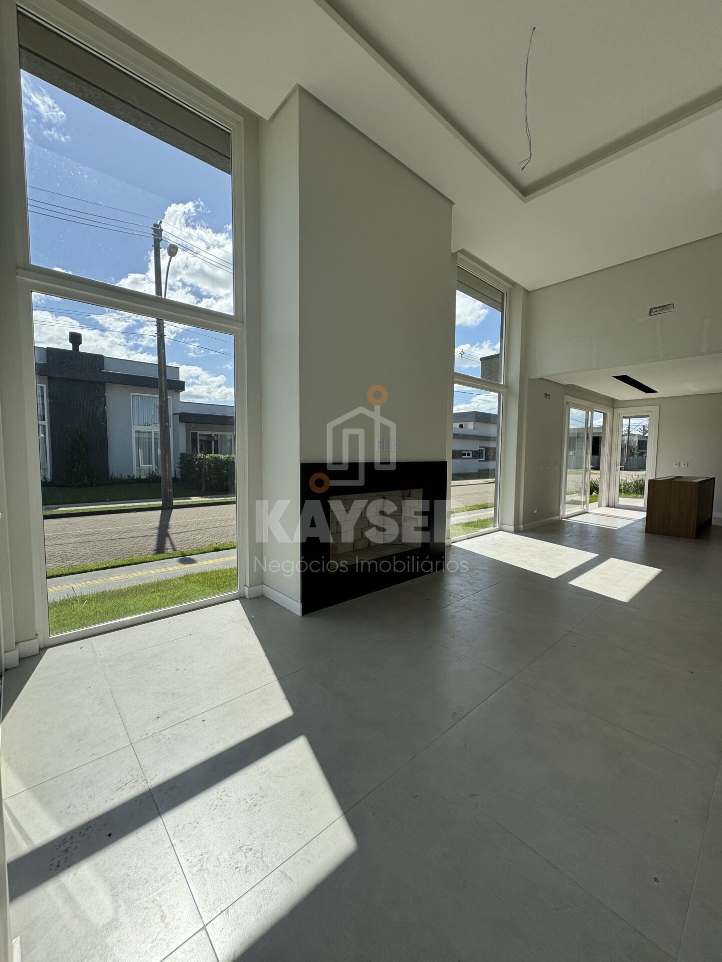 - Pé direito duplo na sala, que cria uma sensação de amplitude e elegância ao ambiente;