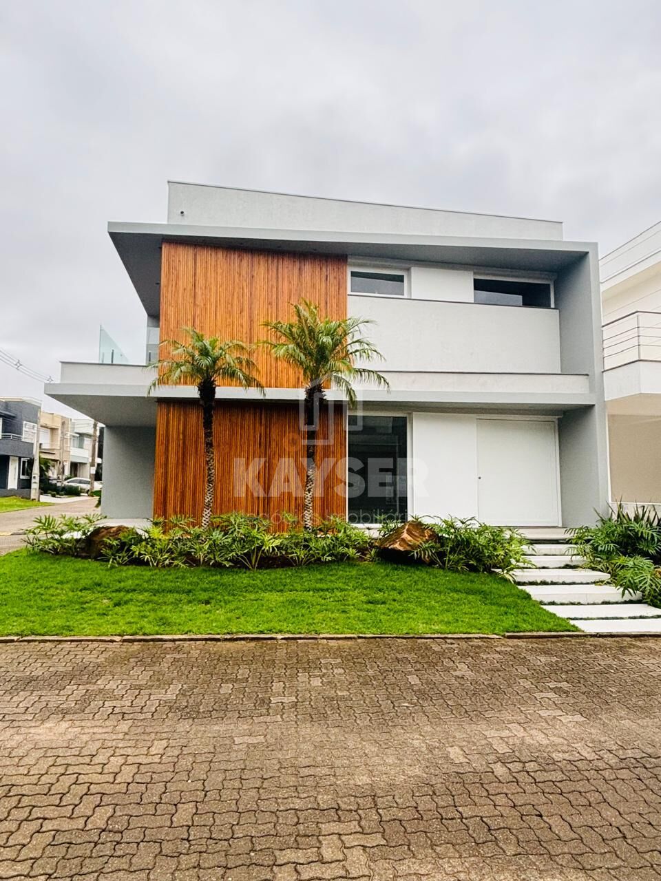 A construção foi concluída com pisos da Portobello Shop, fachada com detalhe em pedra natural e ripado em madeira e alumínio, esquadrias esternas em PVC branco da Prime esquadrias, esquadrias internas da Styllus, lareira revestida em pedra natural e granito preto escovado, churrasqueira revestida em porcelanato e granito preto escovado, cozinha com porcelanato PortoBello Shop, escada revestida com granito preto escovado e guarda-corpo em vidro, sacadas com gurda-corpo em vidro. Os banheiros com revestimentos com porcelanato Portobello Shop, box de vidro nicho de pedra no box, espelho, marcenaria e pedra na bancada, bacia sanitaria e cuba, O lavabo com bancada em pedra e cuba esculpida, espelho.