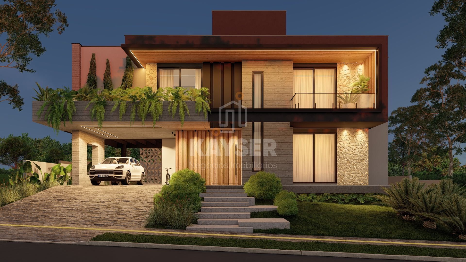 Com 431,29 m² de área construída em um terreno amplo e em posição estratégica do condomínio, contando com 4 suítes com closet, home office, 3 sacadas, amplo pátio com piscina de 30 metros de cumprimento e paisagismo decorativo.