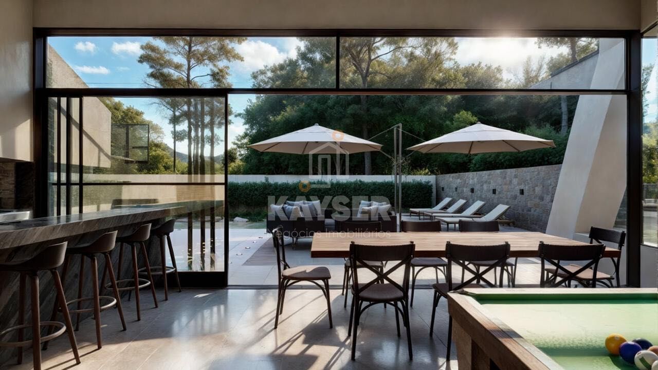 Com 390 m² de área construída em um terreno amplo e em posição estratégica do condomínio, contando com 3 suítes sendo 1 master com hidromassagem, 2 suítes com closet, home office com banheiro (podendo se tornar mais 1 suíte), 3 sacadas, adega, espera para elevador, amplo pátio com piscina natural, lounge com fire pit, 3 vagas de garagem cobertas com tomadas para carros elétricos + 3 descobertas.